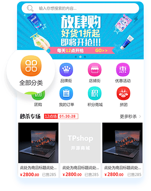 TPshop微商城拥有一套商城的完整架构,让您的商品更好 的进行销售,完善的机制,助您在电商蓝海展开更多机遇