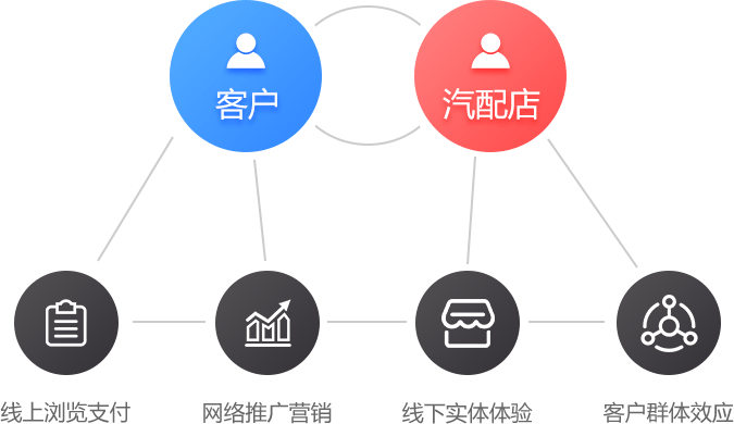 传统汽配企业在技术和产品成本上有一定优势,自身就是供应商,而线下的经销商往往就是众多的汽修店,可以迅速将服务商(汽修店)和供应商整合,实现协同效应。聚合服务商端汽配店,以完整的“配件+诊断+服务”的线上线下一体化服务模式,为消费者提供真正高质量的汽配体验